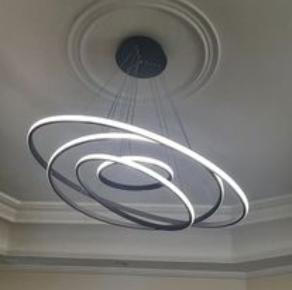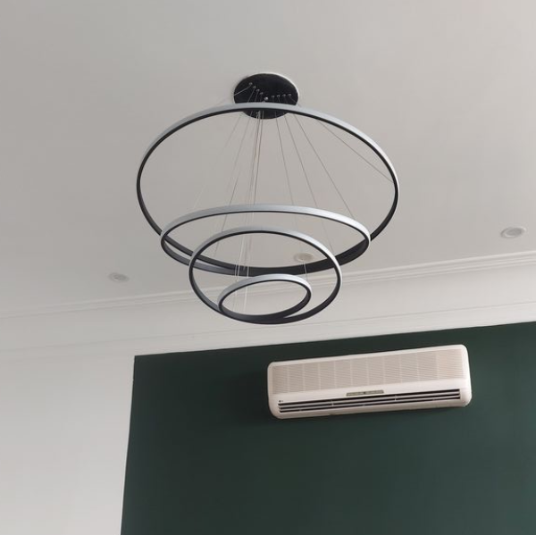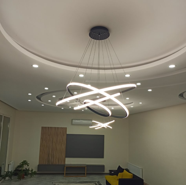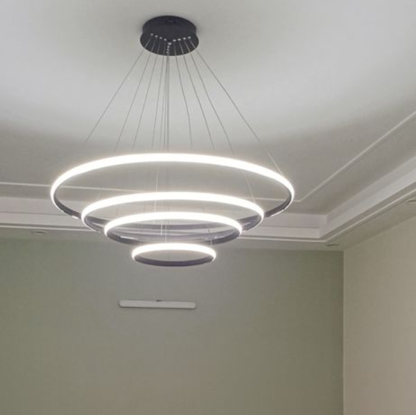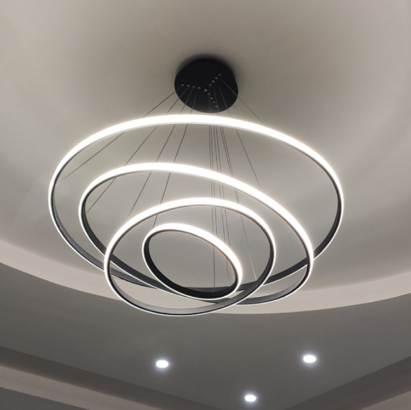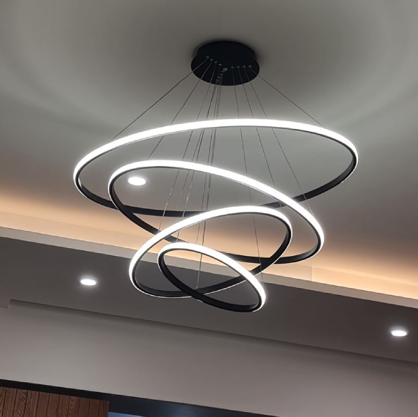لوستر مدرن نئونی چهار حلقه مدل کهکشانی – رنگ مشکی – سایز ۹۰/۷۰/۵۰/۳۰