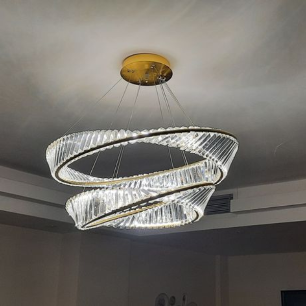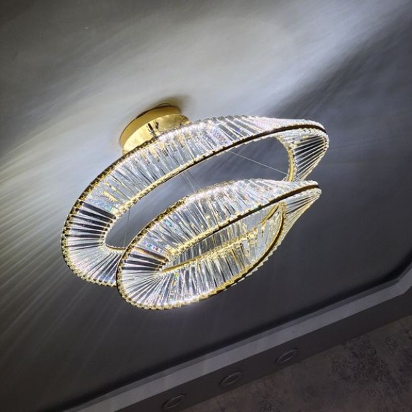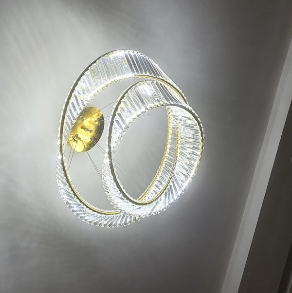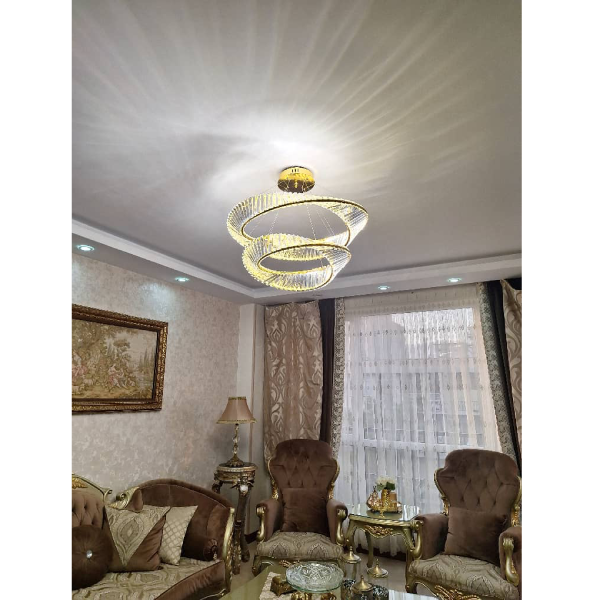 لوستر مدرن کریستالی دو رینگ مدل الهام– آبکاری طلایی فورتیک– سایز ۶۰+۸۰