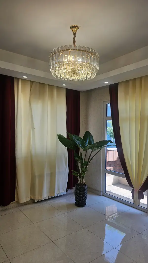 و فضاهای روشن و لوکس با پردههای بلند و مبلمان رسمی