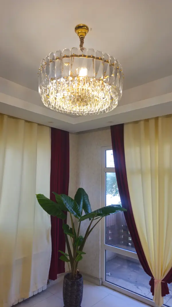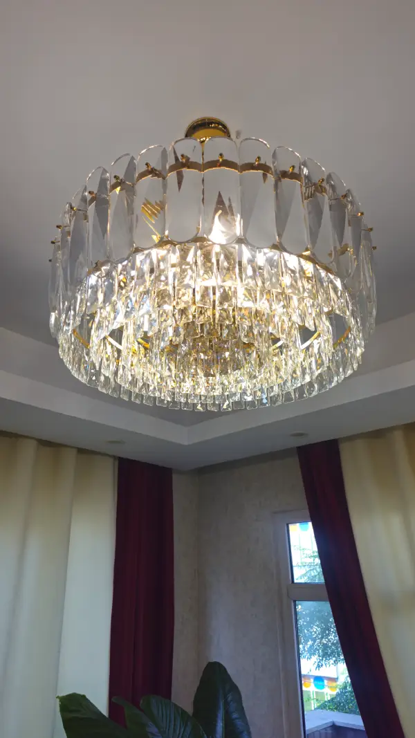 در این مدل تمام کریستالها در یک ارتفاع منظم نصب شدهاند و همین موضوع باعث میشود نور بهصورت یکدست و وسیع در فضا پخش شود.