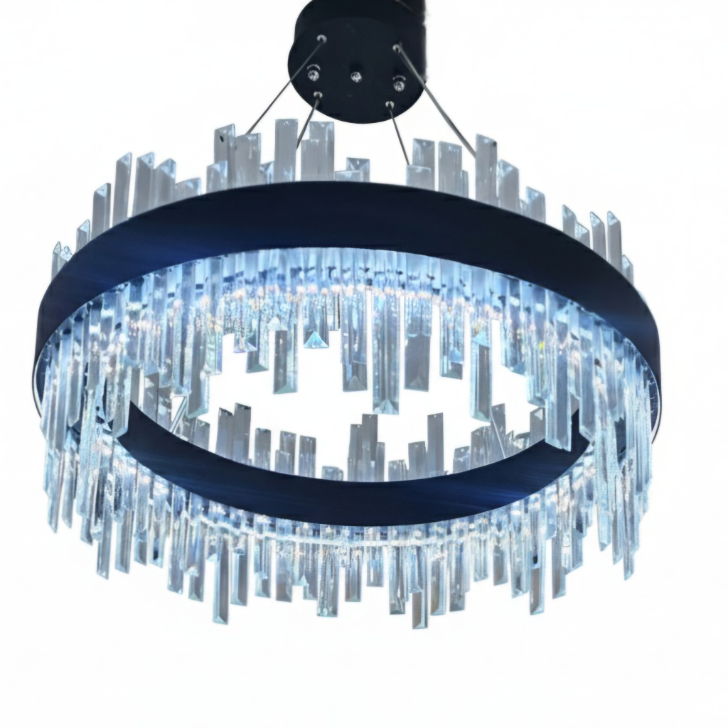 بدنه لوستر از آلیاژ فلزی مقاوم ساخته شده و با رنگ کوره ای مشکی که کیفیت ساخت بالایی دارد. پرداخت بدنه ساده و یکدست است تا تمرکز اصلی روی نورپردازی و فرم کلی لوستر باقی بماند. این ساختار، دوام بالا و عملکرد مطمئن در استفاده طولانیمدت را تضمین میکند.