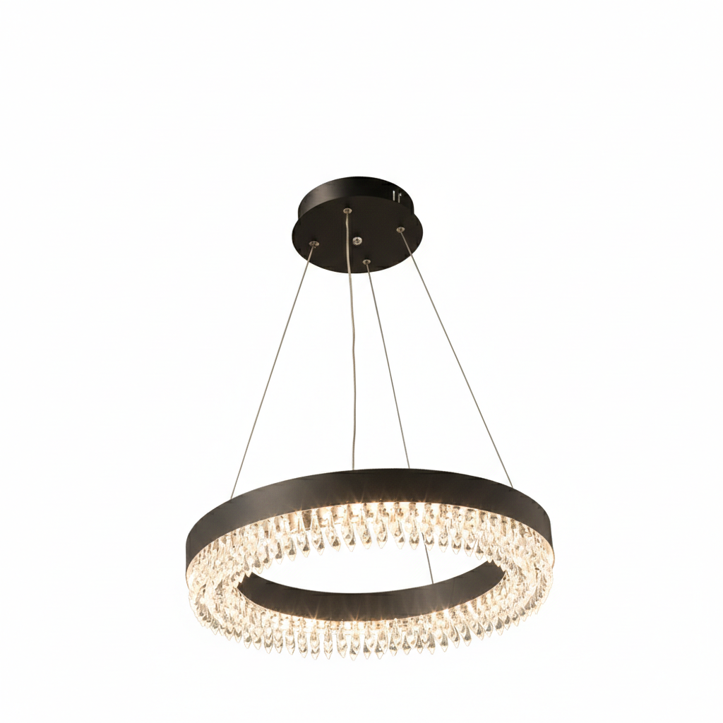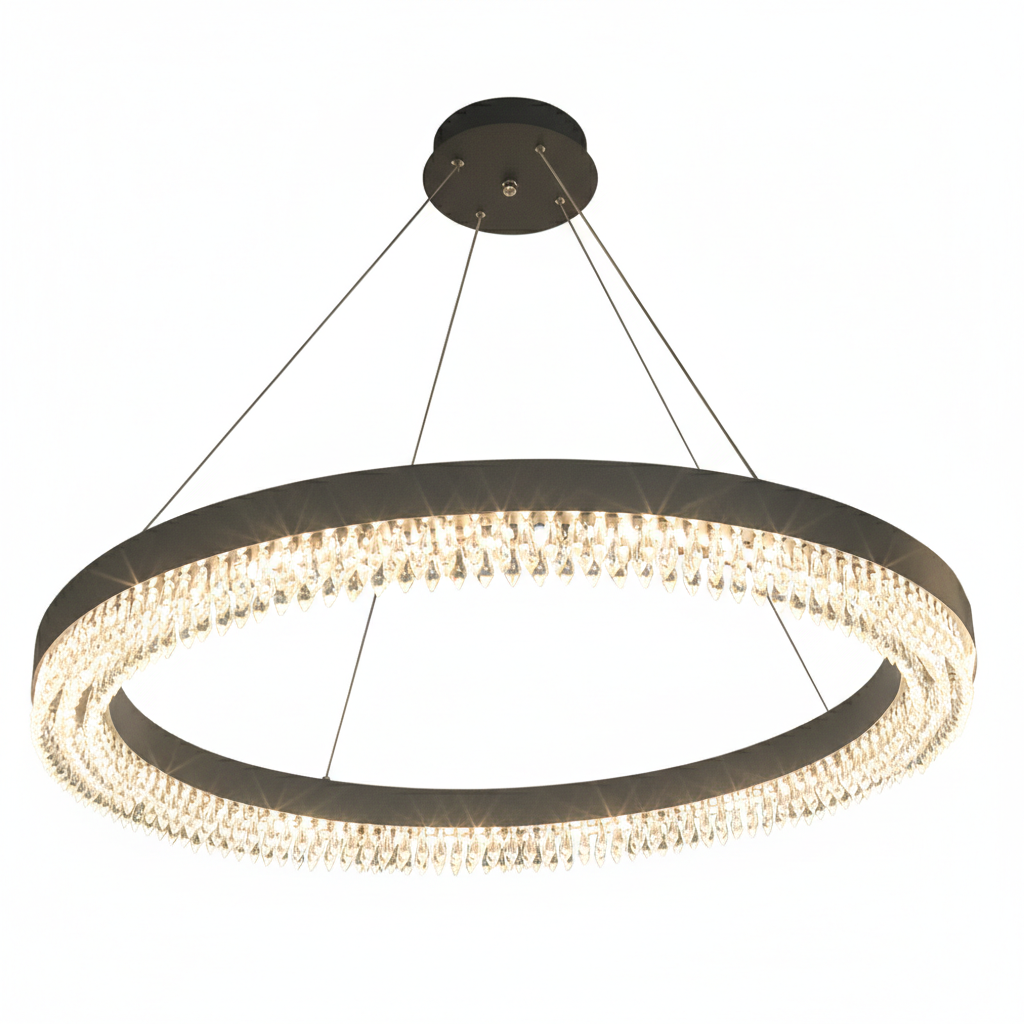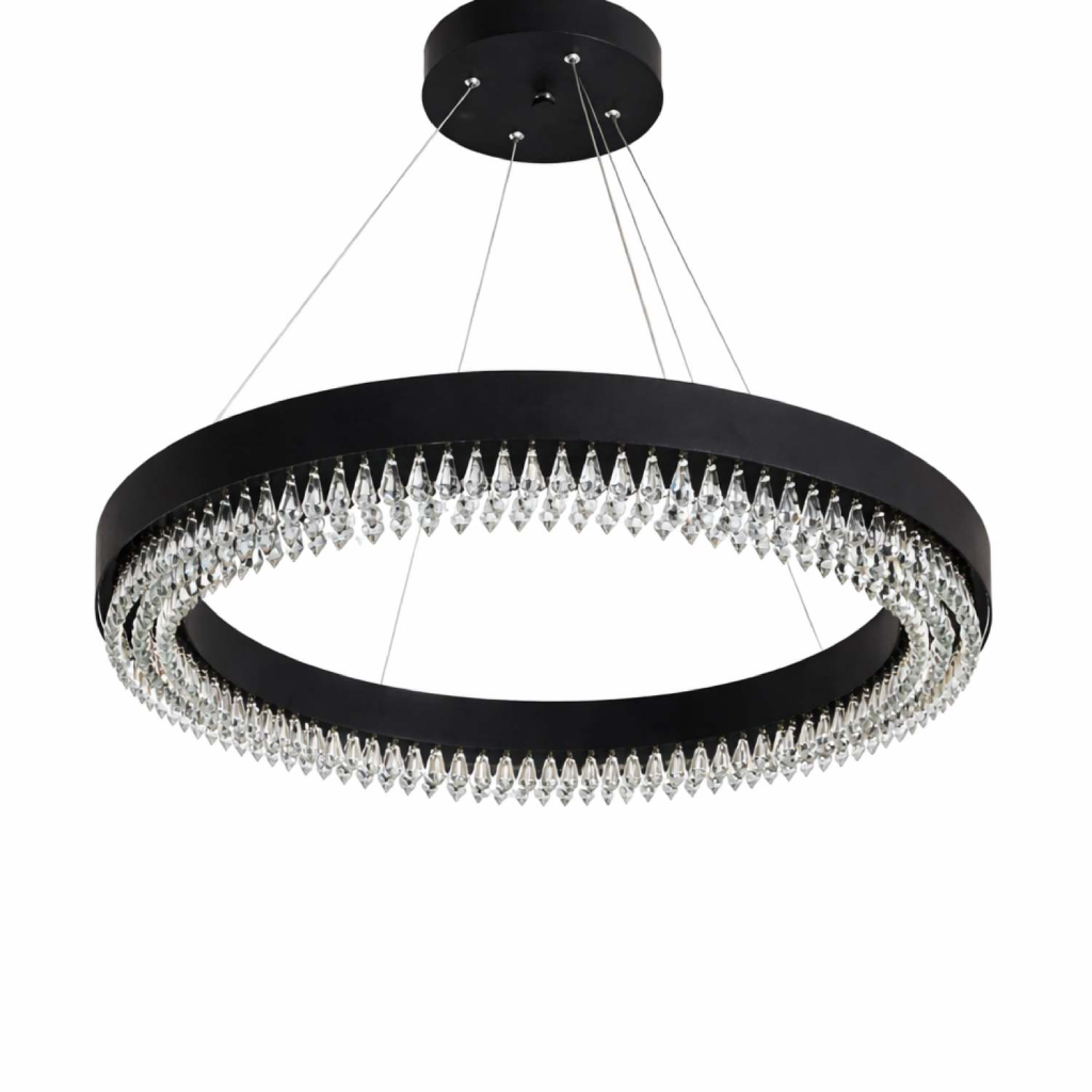 پرداخت دقیق بدنه در کنار کریستال‌های شفاف، جلوه‌ای ظریف و مدرن ایجاد می‌کند که به‌راحتی با دکوراسیون‌های امروزی هماهنگ می‌شود.